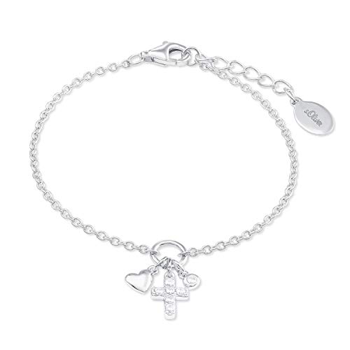 Süßes Mädchen Armband mit Herz und Kreuz-Anhänger aus glänzendem 925er Sterling Silber und einem funkelnden Zirkonia (synth.) der Marke s.Oliver.