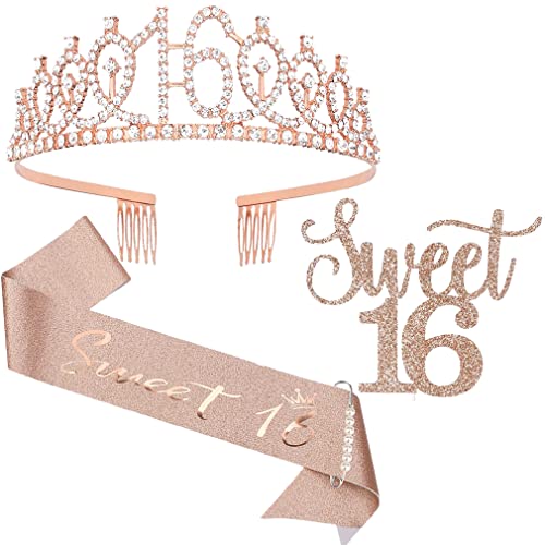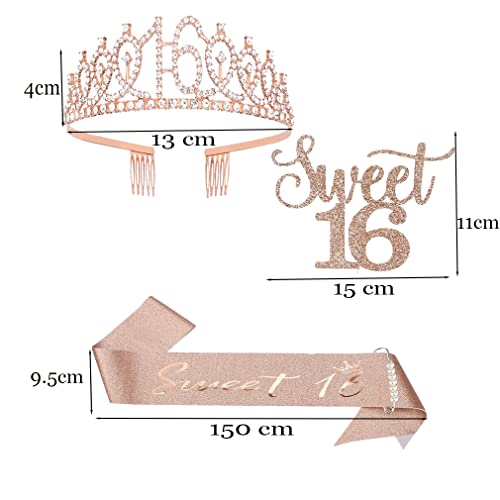Dekorationen zum 16. Geburtstag für Mädchen: glitzernde 16 Tiara/Krone * 1, Es ist meine Schärpe zum 16. Geburtstag * 1, Kuchendeckel zum 16. Geburtstag * 1.