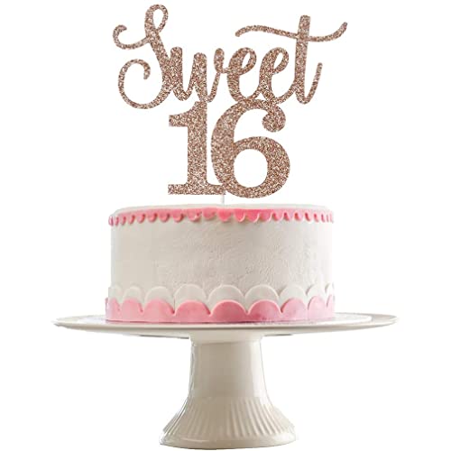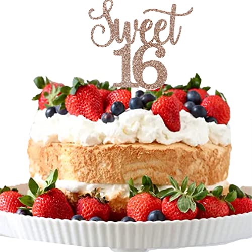 Sweet 16 Birthday Cake Topper in glitzernder Rosenfarbe, perfekt für Partyzubehör und Dekorationen zum 16. Geburtstag von Mädchen.