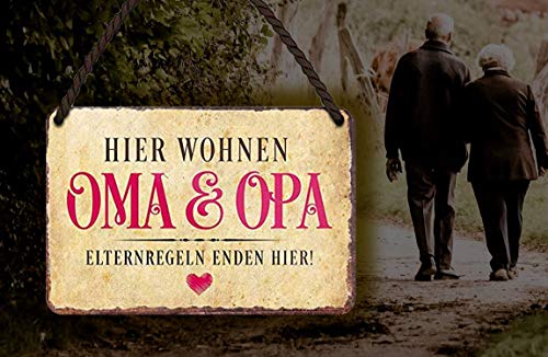 😂【 Lustiger Spruch】“Oma Opa Elternregeln“. Der schöne Schriftzug macht dieses Blechschild zum absoluten Hingucker. Das Schild eignet sich besonders für alle Enkelkinder, die Ihren Liebsten wie Ihren Großeltern, Oma, Opa, Mama, Papa eine Freude machen wollen. 🙂