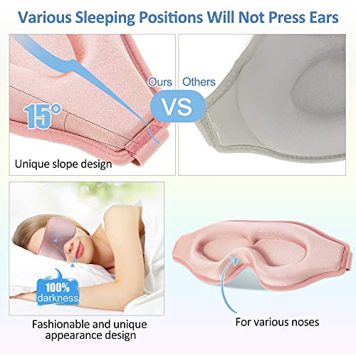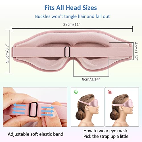 Details: Schlafmaske Frauen 3D Schlafbrille Damen bequem Augenmaske Schlafmaske Rosa, kein Druck auf Augen, wiegt nur 35 g, atmungsaktive Schlafmaske Kinder weich Augenklappe Schlafbrille Damen Sleep Eye Mask