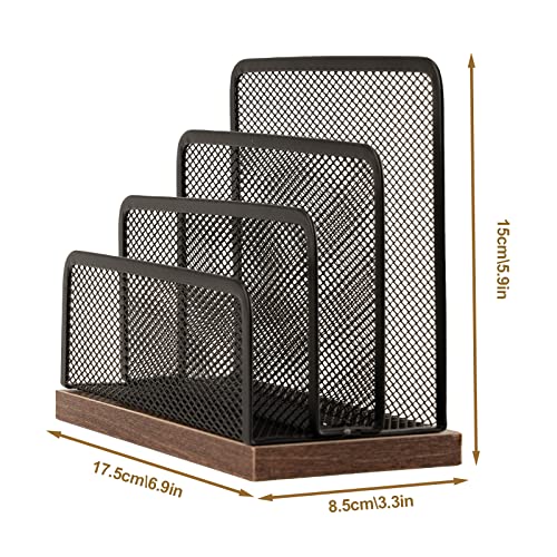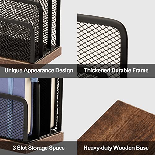 Details: Schreibtisch-Organizer aus Holz, Desktop-Aktenordner, Metallgeflecht mit 3 vertikalen aufrechten Fächern, Postsortierer…