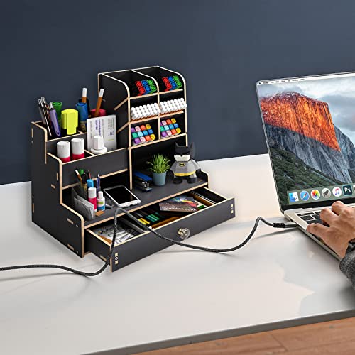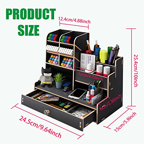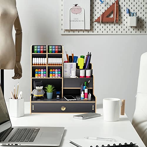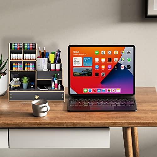 Details: Schreibtisch Organizer aus Holz,Stiftehalter Schreibtisch mit Schublade,Multifunktionaler Büro Organizer,für Stifte Büro…