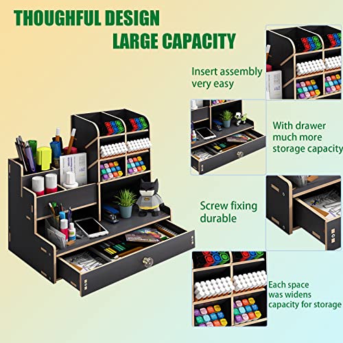 Geschichtetes Aufbewahrungsdesign: Die Größe des Schreibtisch Organizer beträgt 25 * 15* 25 cm.Stiftehalter Schreibtisch 6 schräge Fächer, 4 Fächer mit flachem Boden, 1 ausziehbare Schublade, mehrere Fächer Bietet ausreichend Platz für eine Vielzahl kleiner Gegenstände, um Ihre Sachen zu organisieren.