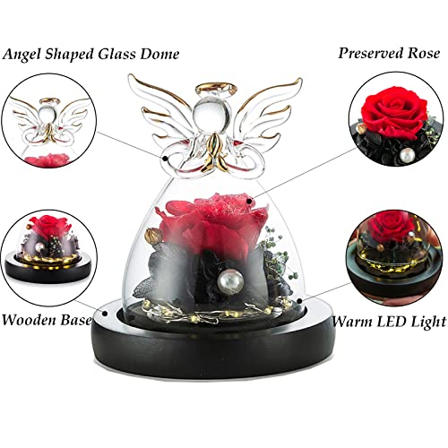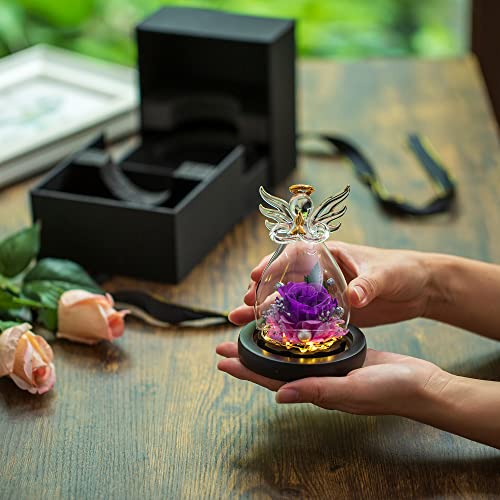 Eine personalisierte Blumenengel-Glasrose: Dieser Schutzwinkel mit Kuppellicht repräsentiert Liebe, Beileid, Heilung und Hoffnung und wurde entwickelt, um die besten Wünsche zu erfüllen. Mögen alle Neugeborenen geliebt werden, der, der uns verlassen hat, gesegnet sein und wir alle geheilt werden und ein hoffnungsvolles Leben haben.