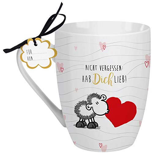 Sheepworld Kaffee-Tasse mit beidseitig bedrucktem Geschenk-Anhänger, mit einem Bändchen an den Henkel gebunden