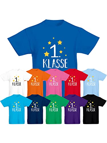 Details: Shirt-Panda Kinder T-Shirt Einschulung · Schule 1. Klasse mit Sternen · Erste Klasse Grundschule Shirt · 100% Baumwolle…
