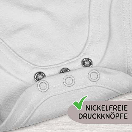 Der Baby Body besteht zu 100% aus gekämmter und ringgesponnener Bio-Baumwolle. Durch einen Envelope-Halsausschnitt und den weichen, elastischen Stoff ist der Baby-Strampler besonders bequem und ermöglicht maximale Bewegungsfreiheit. Die Ton-in-Ton Druckknöpfe runden das Bild wunderbar ab! Die Knöpfe sind übrigens ohne Nickel und gesundheitlich total unbedenklich.