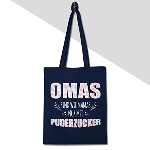 Details: Shirtracer – Jutebeutel Stoffbeutel Stofftasche Baumwolltasche – Oma Geschenk – Omas sind wie Mamas nur mit Puderzucker