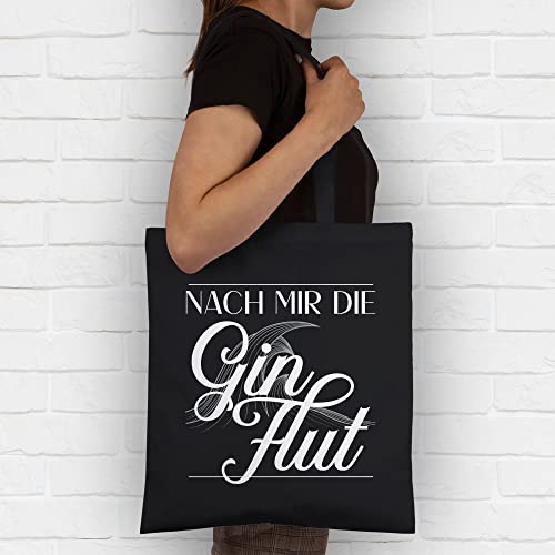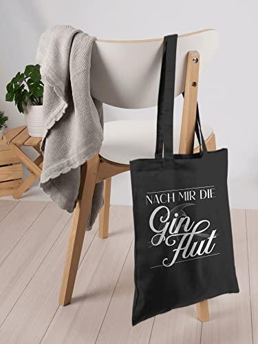 Details: Shirtracer – Jutebeutel Stoffbeutel Stofftasche Baumwolltasche – Party & Alkohol Damen – Nach mir die Gin Flut – weiß