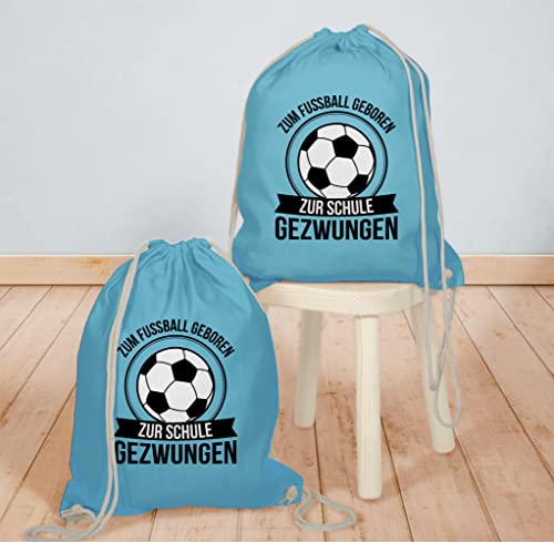 Details: Shirtracer – Turnbeutel Rucksack – Schulanfang & Einschulung Geschenk Turnbeutel – Zum Fußball geboren zur Schule…