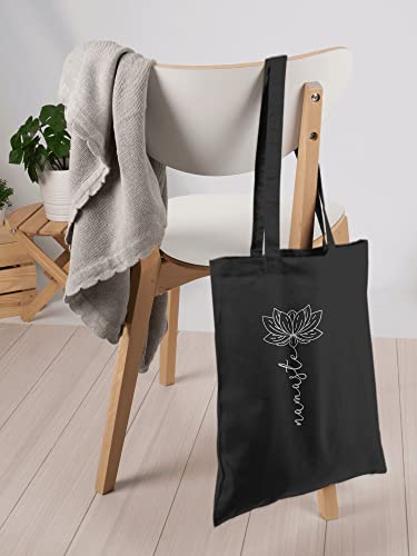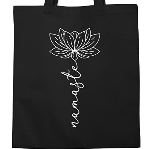 Details: Shirtracer – Jutebeutel Stoffbeutel Stofftasche Baumwolltasche – Yoga und Wellness Geschenk – Namaste Lotusblüte weiß