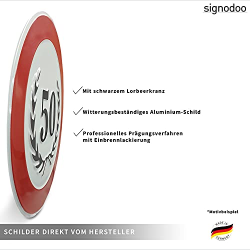 Be the first to review “signodoo® 90-jähriges Geburtstags- oder Jubiläumsschild mit schwarzem Lorbeerkranz | Aluminium, geprägt | Größe: Ø 20,0…”