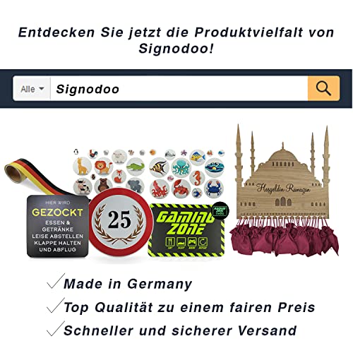 Dank ihrer formstabilen Eigenschaft können die Schilder an allen beliebigen Wänden befestigt werden z. B. an Gartenhäuschen, Biergärten und Partykeller | Geeignet für den Innen- und Außenbereich | UV-Beständig, wetterfest & Temperaturresistent (-40 °C bis +160 °C)