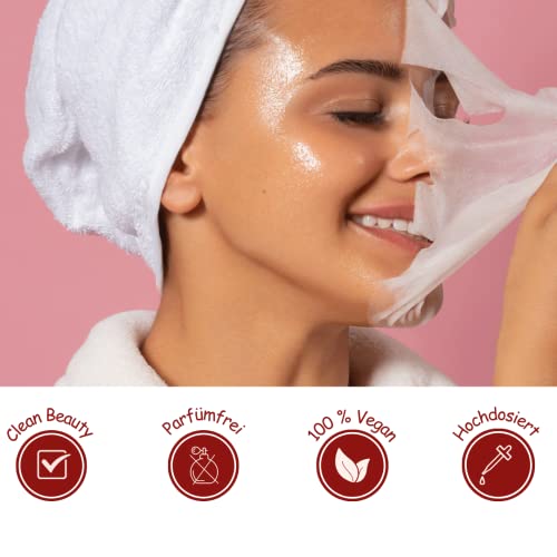 Anti Aging Serum: Die Granatapfel Tuchmaske sorgt für eine strahlend frische Haut mit Soforteffekt. Die Anti-Falten Gesichtsmaske wirkt auf das Gesicht revitalisierend und feuchtigkeitsspendend.