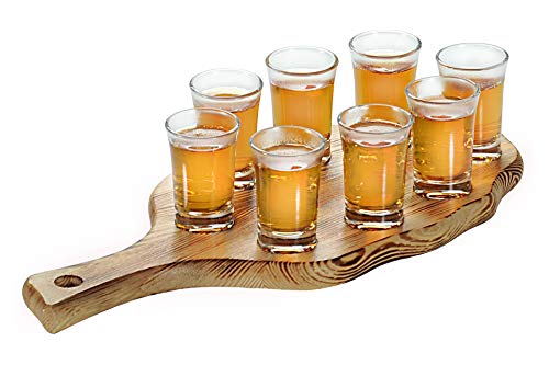 Schnapsglasträger aus Kiefernholz (geflammt) mit 8 Gläsern + Ihre individuelle Wunschgravur