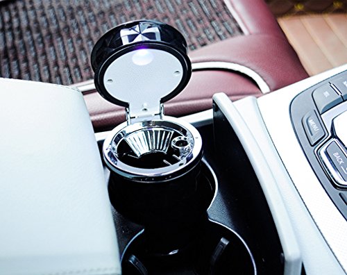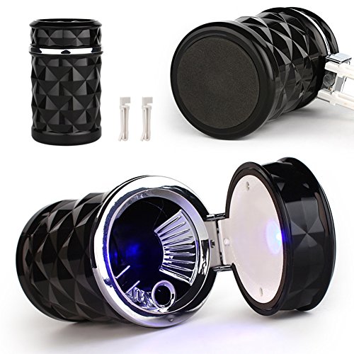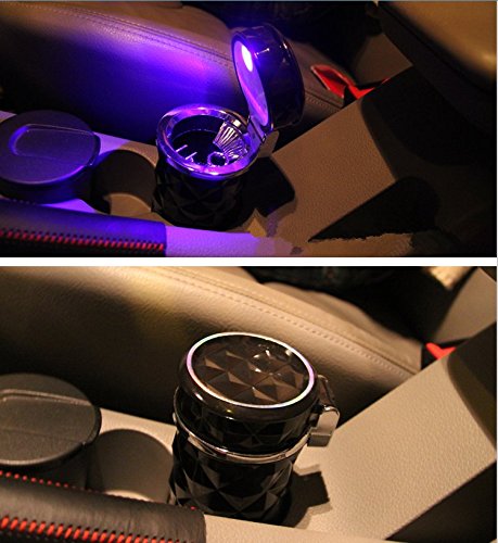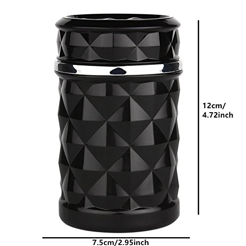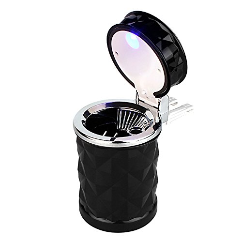 Details: SOEKAVIA Portable LED Auto Aschenbecher mit deckel Raute Muster Aschenbecher mit Halterung für Auto-schwarz