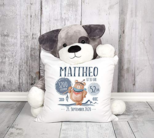 Details: SpecialMe® personalisierbares Kissen zur Geburt mit Boho Bär, Geburtskissen (ohne Füllung), Namenskissen Geschenk Geburt…