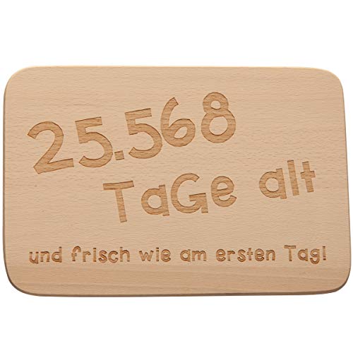 Das Frühstücksbrettchen aus Buchenholz mit eingraviertem Alter in Tagen ist eine witzige Geschenkidee zum runden Geburtstag oder Jubiläum.