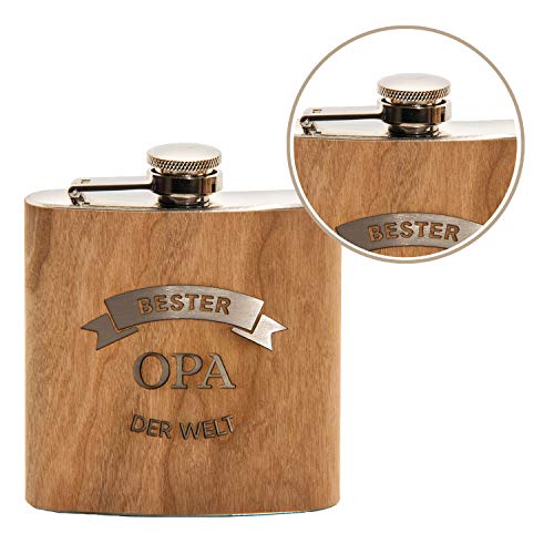 FLACHMANN: Der Edelstahl-Flachmann mit exklusiver Holz-Veredelung ist Ihr stylischer Begleiter für unterwegs. Egal wo Sie sind, Ihr Lieblingsgetränk ist immer mit dabei – ideal beim Skifahren und Wandern.