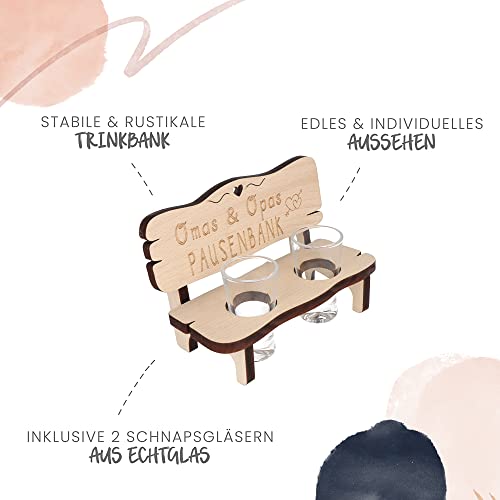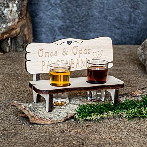 HOCHWERTIGE GRAVUR✒️: Graviert mit dem Spruch „Omas und Opas Pausenbank“ ist die Schnapsbank ein lustiges Geschenk für deine Großeltern zu Weihnachten oder zu allen anderen Anlässen.