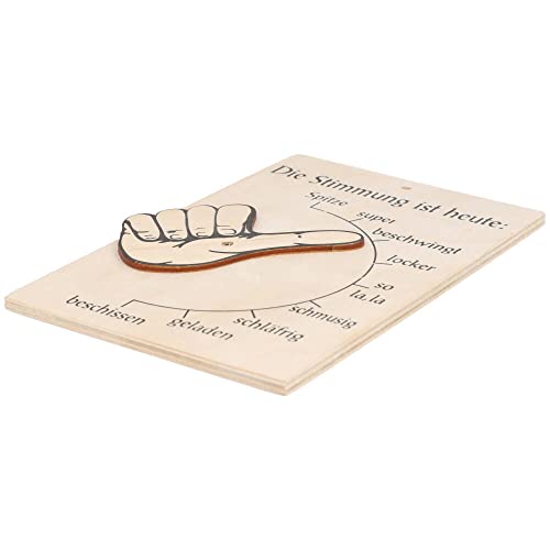 STIMMUNGSBAROMETER: Lustiger Stimmungsbarometer aus Holz zum Anzeigen der Stimmung. Mit diesem Stimmungsanzeiger zeigen Sie Ihrer Familie, Freunden oder Kollegen, wie Ihre Laune gerade ist. Einfach den Daumen dieses Türschilds auf die jeweils herrschende Stimmung drehen.