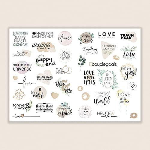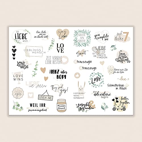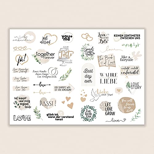 ❤️ 100% AUSWAHL – Sie erhalten 164 Motive auf 4 Seiten mit Sticker für Ihr Hochzeit Gästebuch jeweils auf einem A4-Bogen