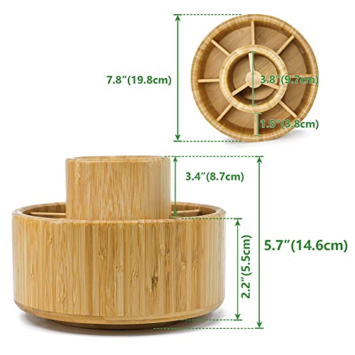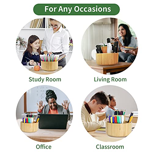 Details: Bambus-Stifthalter, rund, drehbar, für 420 Stifte, Schreibtisch-Aufbewahrung für Marker, Buntstifte, Kunstpinsel usw.