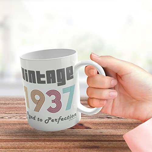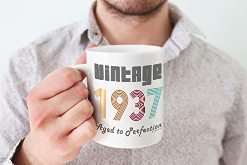 Eine tolle Vintage-Tasse, um ihren Geburtstag zu feiern: Wenn Sie auf der Suche nach Geburtstagsgeschenken für Frauen oder Männer sind, dann suchen Sie nicht weiter. Diese außergewöhnliche Qualität trägt die Aufschrift „Vintage 1937 Aged to Perfection“ – es wird sie zum Lächeln bringen. Nicht nur zum Geburtstag ist diese Tasse auch als Valentinstags- oder Weihnachtsgeschenk. Das perfekte Geschenk zum 85. Geburtstag.