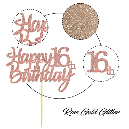 Details: Sumerk 16 Tortenaufsätze zum 16. Geburtstag, Tortenaufsätze für Geburtstagsfeiern, Dekorationszubehör, Roségold, 1…