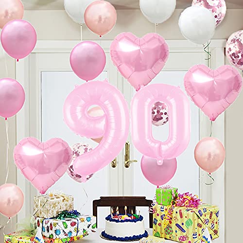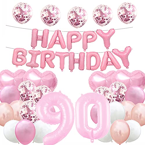 Lieferumfang: 102 cm pinke Folienballons „90“ Set, 16 „Happy Birthday“ Bannerballons, 4 Stück 45,7 cm Mylar-Herzballons, 10 Stück Konfetti-Ballons, 5 Stück rosa Latexballons, 5 Stück roségoldene Latexballons und 5 Stück weiße Latexballons. Das Geburtstag-Set ist perfekt für Geburtstagsfeier