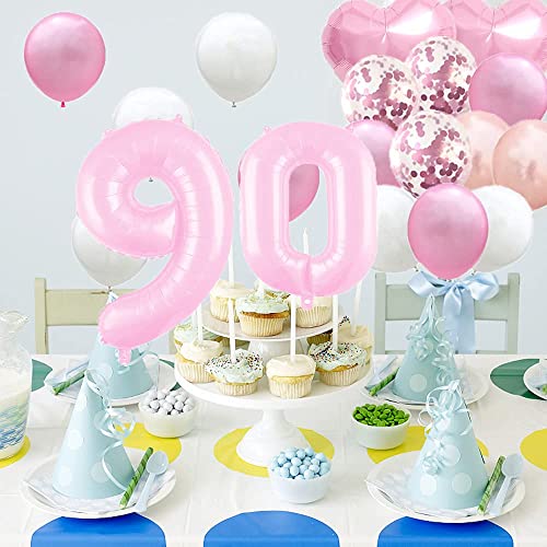 Pinke 90 Luftballons: Die Dekoration zum 90. Geburtstag kann mehrmals wiederverwendet werden, es ist einfach, und die perfekte Wahl für den 90. Geburtstag. Mylar-Ballon hat ein selbstdichtendes Ventil, das leicht aufzublasen und aufzublasen ist. Es soll wiederverwendet werden
