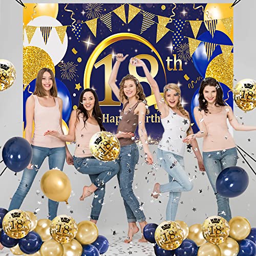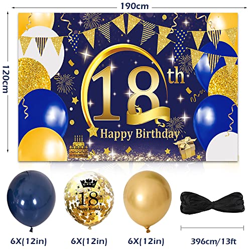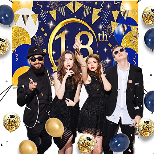 18 Geburtstag Deko Banner Luftballons Kits – Sie erhalten 1 Extra Lange 18 Geburtstags-Banner in Navy und Gold, 6 dunkelblaue 12-Zoll-Luftballons, 6 goldene 12-Zoll-Luftballons, 6 goldene Konfetti-Luftballons 12 Zoll und einen freundlichen -Kundenservice.