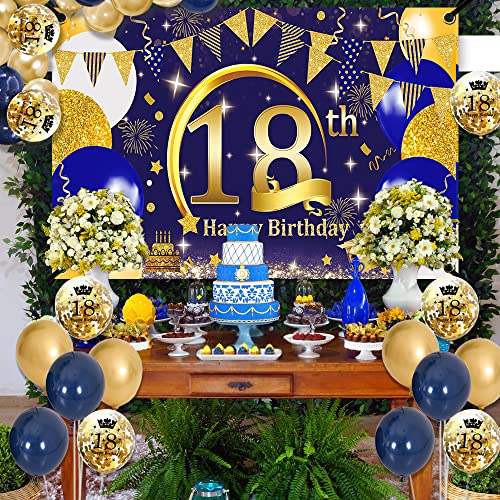 Details: SWPEED 18. Geburtstag Junge Deko Banner, Blau Gold Deko 18. Geburtstag Junge Banner Poster und Navy Blau Gold…