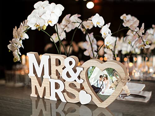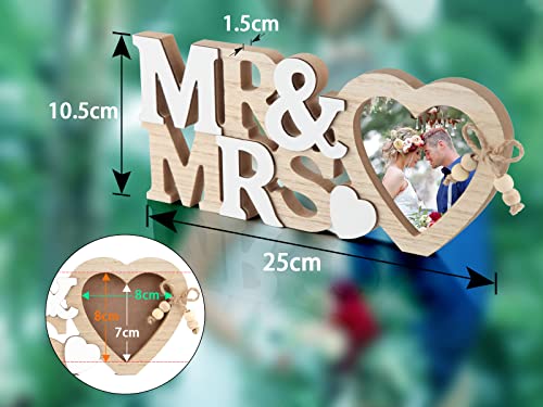 ❣️Mit einer Dicke von 1,5 cm kann die SWTYExt Mr & Mrs Hochzeit Geschenk für Brautpaar mit Herz Fotorahme stabiler auf dem Hochzeitstisch stehen, und das einteilige Design mit Zwischenbuchstaben ist doppelt verstärkt, um zu verhindern, dass die Dekoration bei leichten Stößen herunterfällt.