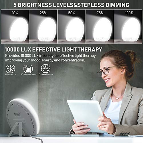 【10000 LUX FULL SPECTRUM UV-FREIES LICHT】Verwendet das gesamte Spektrum, um schädliches UV-Licht herauszufiltern. Liefert eine tageslichtlampe mit einer Intensität von bis zu 10000 Lux, um den Winter-Blues, Schlafstörungen, Müdigkeit und Schichtarbeit zu bekämpfen.