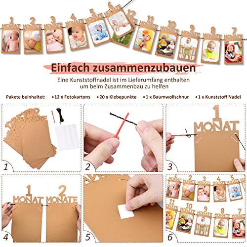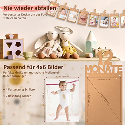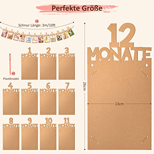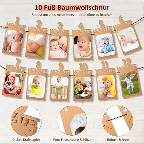 【Paket Inbegriffen】Das Fotobanner enthält 12 Karten mit Buchstaben von 1 bis 12 Monaten, und wird aus hochwertigen Kraftpapieren hergestellt, dick und robust. Die Breite jedes Fotos beträgt ca. 14cm x 27cm / 5,51″ x 10,62″, geeignet für Fotos im Format 4 x 6 Zoll.