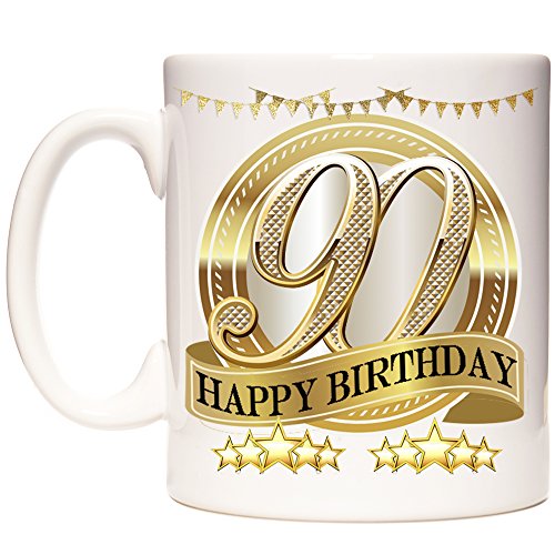 Details: Tasse mit Aufschrift „Happy 90th Birthday“, tolles Geschenk für jemanden, der seinen 90. Geburtstag feiert.