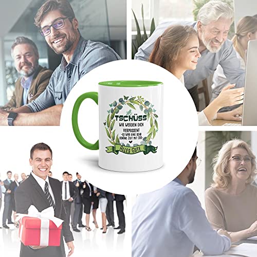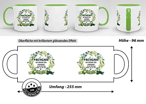 Details: Tasse mit Spruch – Tschüss, wir Werden Dich vermissen – Geschenk für Kollegen, Kolleginnen, Arbeit, Büro, Abschied…