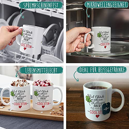 Coole bedruckte Tasse für die besten Kollegen, Kolleginnen, Mitarbeiter und Mitarbeiterinnen. Die hochwertige Keramiktasse als originelle und persönliche Geschenkidee – ob zum Abschied, Geburtstag, Weihnachten oder als Dankeschön. Passend zu jedem Anlass.