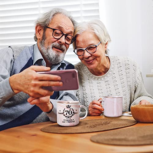 Elegantes Geschenk zum 70. Geburtstag – Dies ist das ideale Geschenk zum 70. Geburtstag für Frauen. Auf dem Körper der Tasse steht die limitierte Auflage, genau wie wir wissen, dass ein 70. Geburtstag einzigartig und exklusiv ist. Dieser marmorierte Keramik-Kaffeetasse mit seinem einzigartigen rosa Muster ist elegant und wunderschön und passt zum Alter des Beschenkten und macht dieses Design auffallend. bis zur Perfektion gealtert, unsere besten Wünsche an sie.