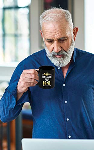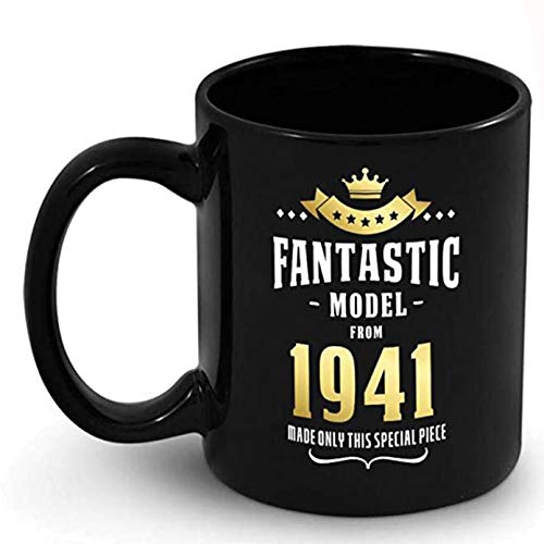 Tasse aus Keramik. Eine schwarze Tasse mit dem eigenen Geburtsjahr in Goldfarbe, ist eine nette Geschenkidee zum Verschenken und Empfangen. Diese lustigen Tassen sind das beste Geschenk für diejenigen, die 1941 geboren wurden.