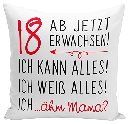 Details: Tassenbrennerei Kissen mit Spruch 18 ab jetzt erwachsen – Geburtstagskissen zum Geburtstag für Mädchen & Jungen zur…