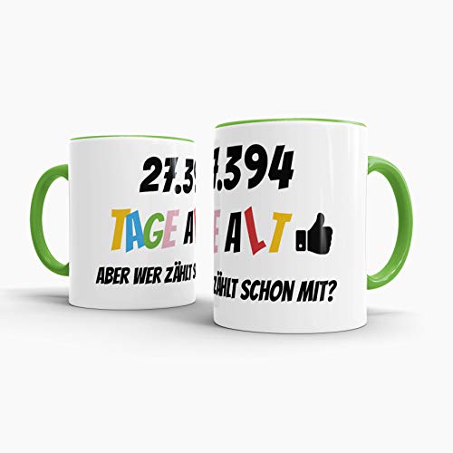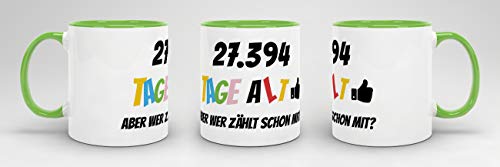 Details: Tassendruck Geburtstags-Tasse 27394 Tage alt – Aber wer zählt Schon mit Geburtstagsgeschenk zum 75. Geburtstag in Innen…