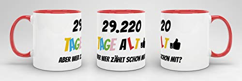 Details: Tassendruck Geburtstags-Tasse 29220 Tage alt – Aber wer zählt Schon mit Geburtstagsgeschenk zum 80. Geburtstag in Innen…