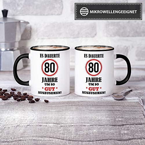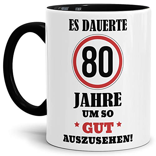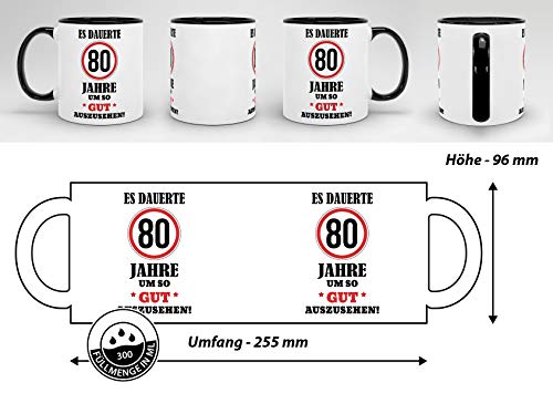 Details: Tassendruck Geburtstags-Tasse Es dauerte 80 Jahre um so gut auszusehen Innen & Henkel Schwarz/Geburtstag/Geschenkidee…