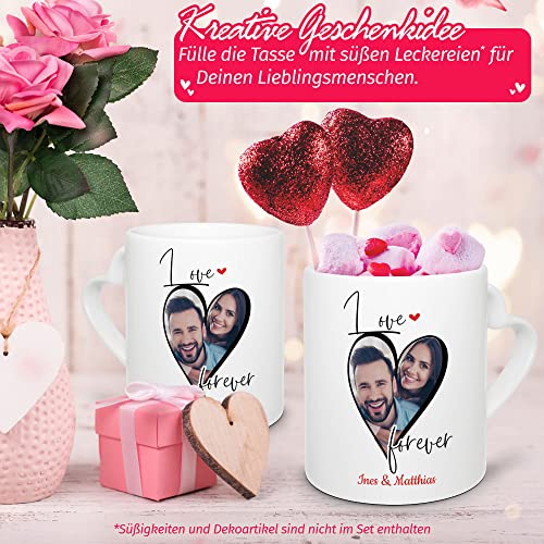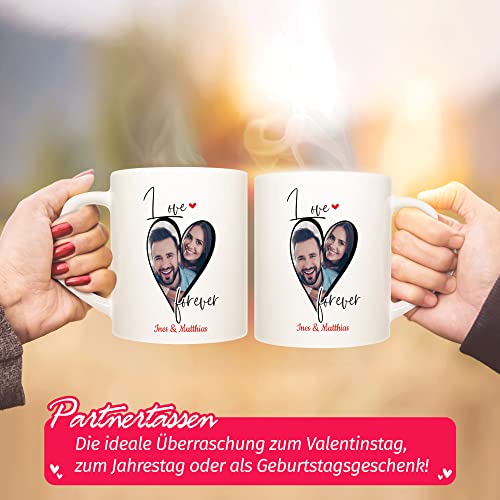 Details: Tassendruck Partner-Tasse – Love Forever – mit Foto & Namen selbst gestalten – Geschenk zum Valentinstag, Jahrestag…
