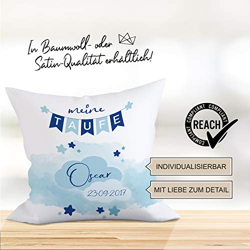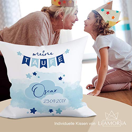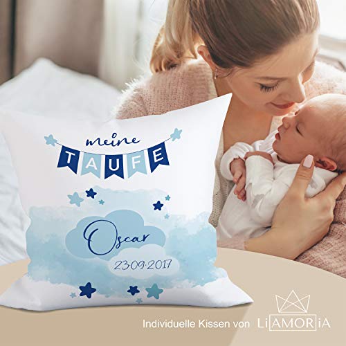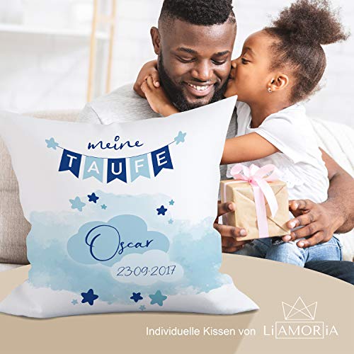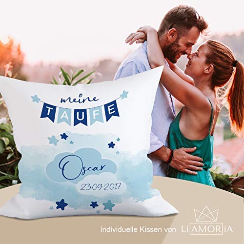 Details: Liamoria® Taufkissen zur Taufe oder Geburt Modell Oscar 40 x 40 cm Kissen Bezug mit Personalisierung ohne Füllung…