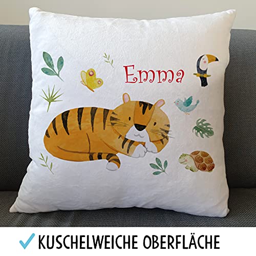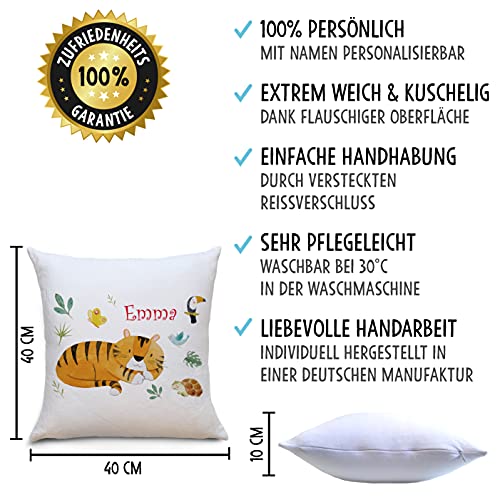 Details: OWLBOOK Tiger Safari Tiere Flauschiges Kissen mit Füllung Personalisiert mit Namen Geschenke Geschenkideen zur Geburt…