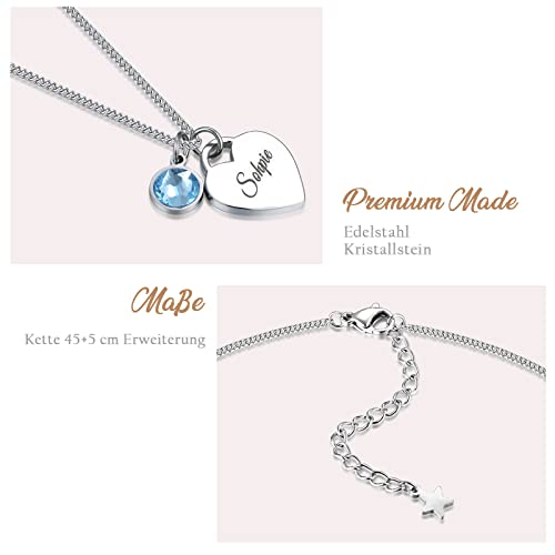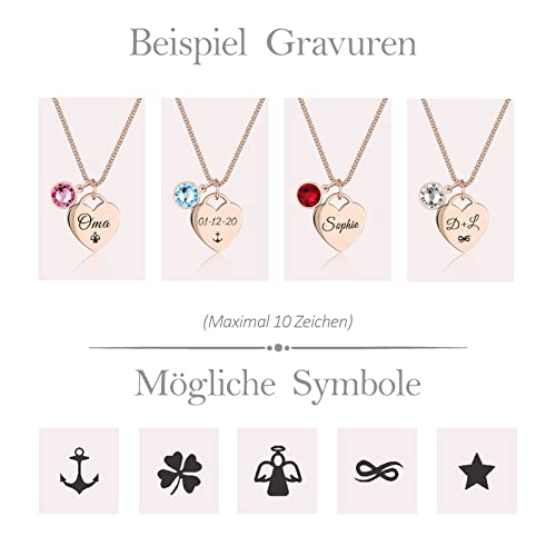 Details: TMT Personalisierte Kette mit Herz und Kristall (silber & rose-gold) Kette mit Namen Gravur ideal als Geschenke für…